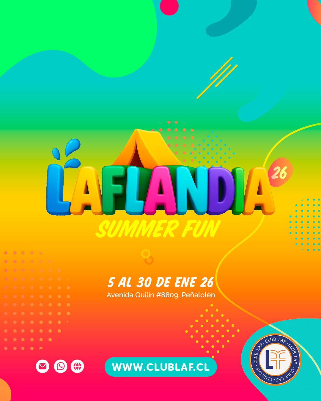 ¡BIENVENIDOS A LAFLANDIA 2026! ¡Asegura tu cupo en nuestro Summercamp N° 16 que iniciamos como Club Laf! 📆 1er ciclo: 5 al 16 de Enero ...